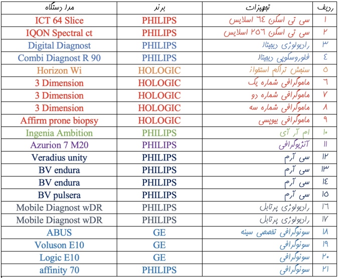 نام و مشخصات تجهیزات تصویربرداری مرکز جامع سرطان